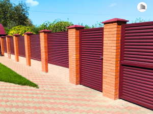 Размеры проемов сложно сделать идеально одинаковыми. И как быть, если заборные секции имеют одинаковый стандартный размер? Ну, если проем меньше, то ламели можно подрезать. При этом в местах реза будет нарушено антикоррозийное покрытие. А если проем больше нужного размера? Поэтому правильный подход сначала установить столбы, а затем заказать секции по индивидуальным размерам каждого проема.